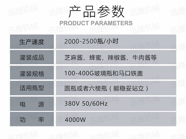 B、灌裝機采用橫推料的方式,縮短了下料斗到灌裝頭的距離,提高了灌裝速度,更重要的是解決了含油量大的物料在灌裝過程中出現的有的瓶油多,有些瓶醬多的灌裝難.,大大提高了灌裝精度。