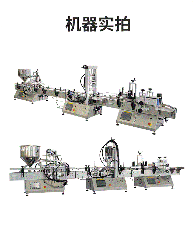 產(chǎn)品說明:生產(chǎn)線根據(jù)灌裝范圍選擇型號(hào),灌裝部分為雙頭下潛式灌裝機(jī),適用于不同物料不同瓶子的灌裝,配備自動(dòng)壓蓋機(jī)和圓瓶貼標(biāo)機(jī),可實(shí)現(xiàn)不同蓋子的旋蓋貼標(biāo)工作。