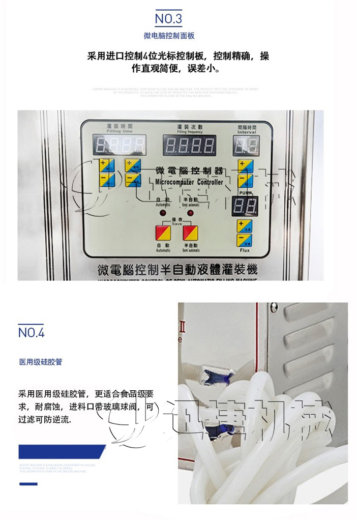 7、可配多個灌裝頭,常用的型號有單頭機、雙頭機和四頭機;