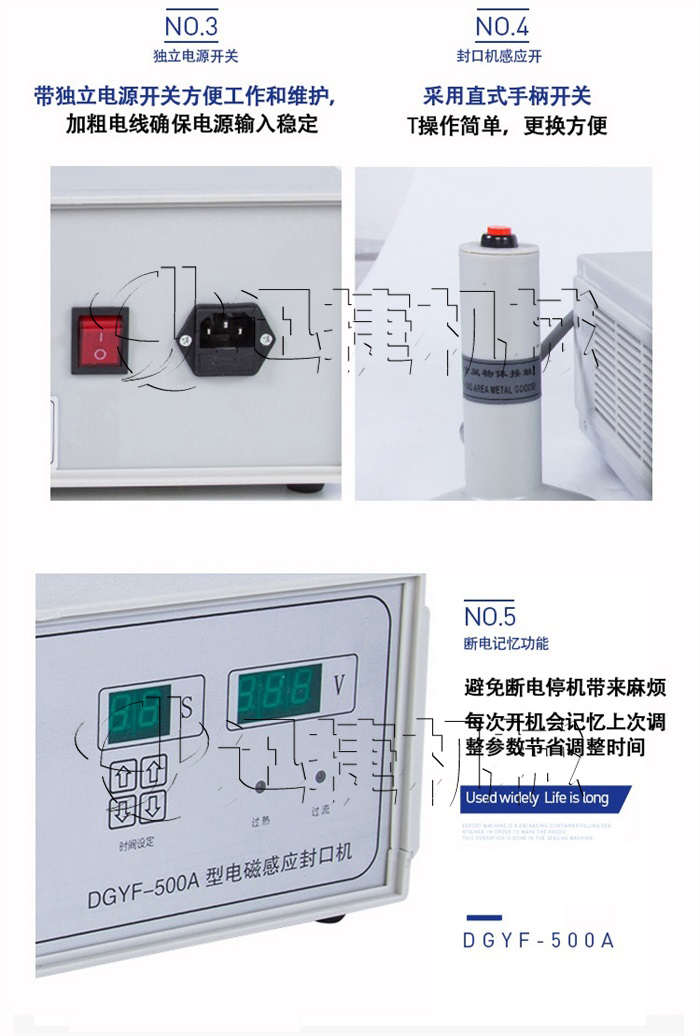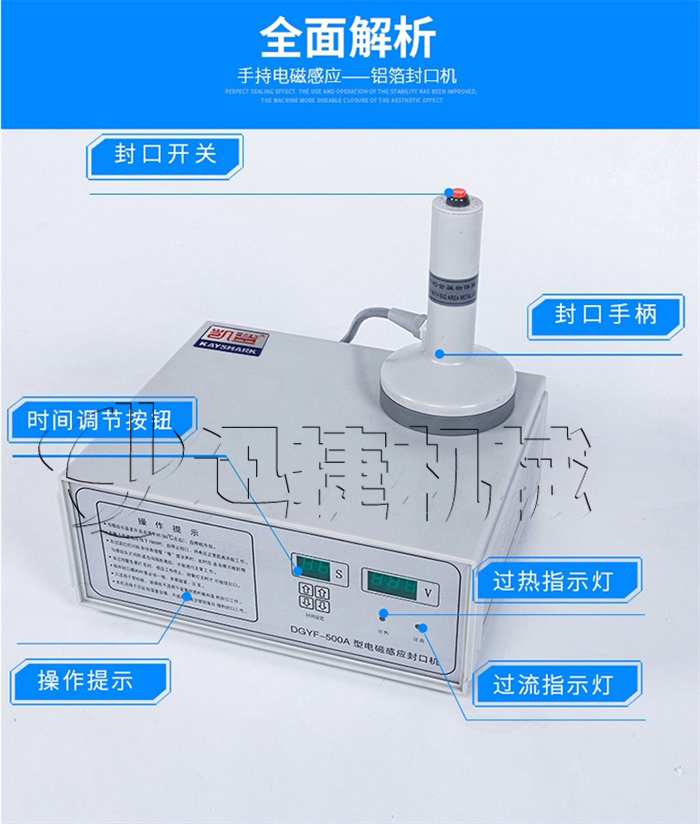 該該封口機(jī)為手持式鋁箔封口機(jī),是一種便攜式電磁感應(yīng)加熱封口設(shè)備,專為制藥、化工、農(nóng)藥、食品、化妝品、輕工行業(yè)對(duì)容器進(jìn)行鋁箔嚴(yán)密封口,封口材質(zhì)使用廣泛。