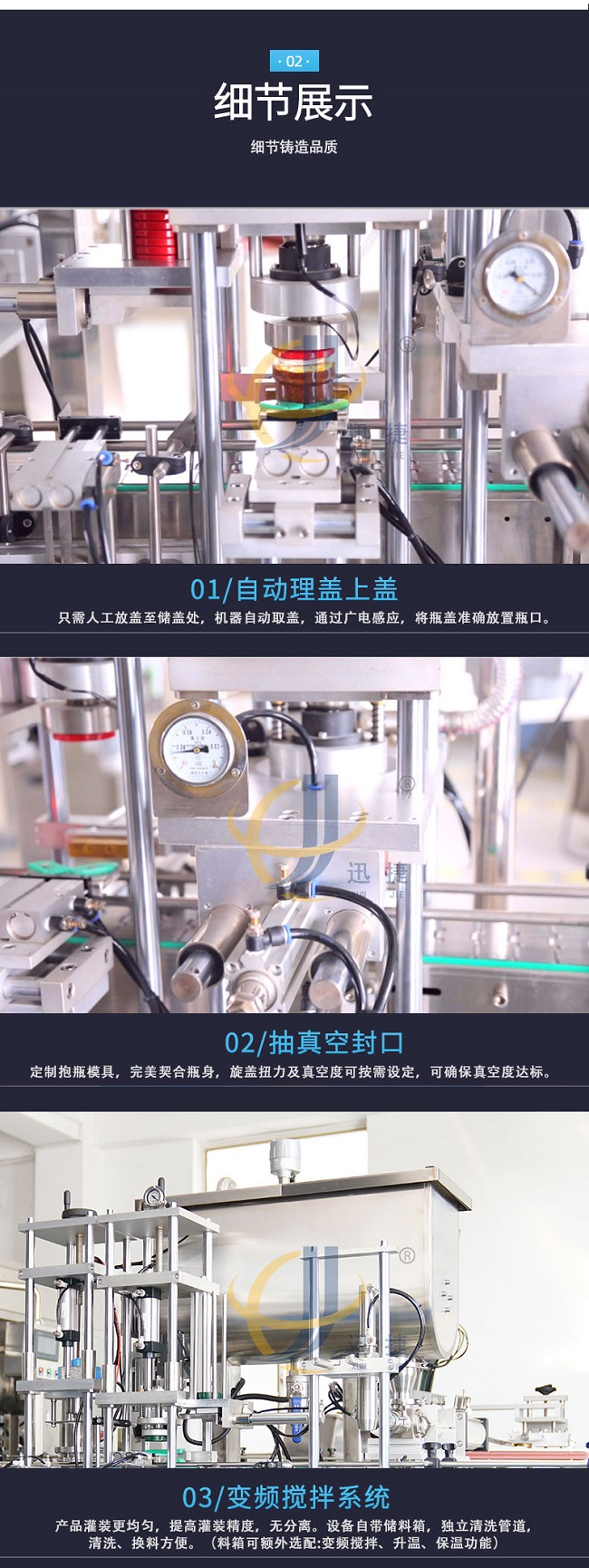迅捷機(jī)械加工設(shè)備齊全,技術(shù)力量雄厚,選用德國(guó)PLC控制系統(tǒng)、臺(tái)灣AirTac的氣動(dòng)組件和臺(tái)灣伺服的電控組件,從這幾個(gè)部件可以看的出來全自動(dòng)牛肉醬灌裝機(jī)改善的不僅是質(zhì)量,生產(chǎn)效率和產(chǎn)品的外觀包裝,還會(huì)不斷的引進(jìn)國(guó)際上新的科學(xué)技術(shù),全自動(dòng)牛肉醬灌裝機(jī)用更好的質(zhì)量滿足生活的需求。在自動(dòng)化生產(chǎn)日漸普及的今天,全自動(dòng)牛肉醬灌裝機(jī)讓企業(yè)的商品以更快的速度出現(xiàn)在市場(chǎng)中,畢竟一些繁雜的工作讓人工去完成的話不但麻煩,效率也不會(huì)很高,想要適應(yīng)現(xiàn)代化的大規(guī)模批量生產(chǎn),就需要全自動(dòng)牛肉醬灌裝機(jī)的幫助來代替人工完成這些繁雜的工作。